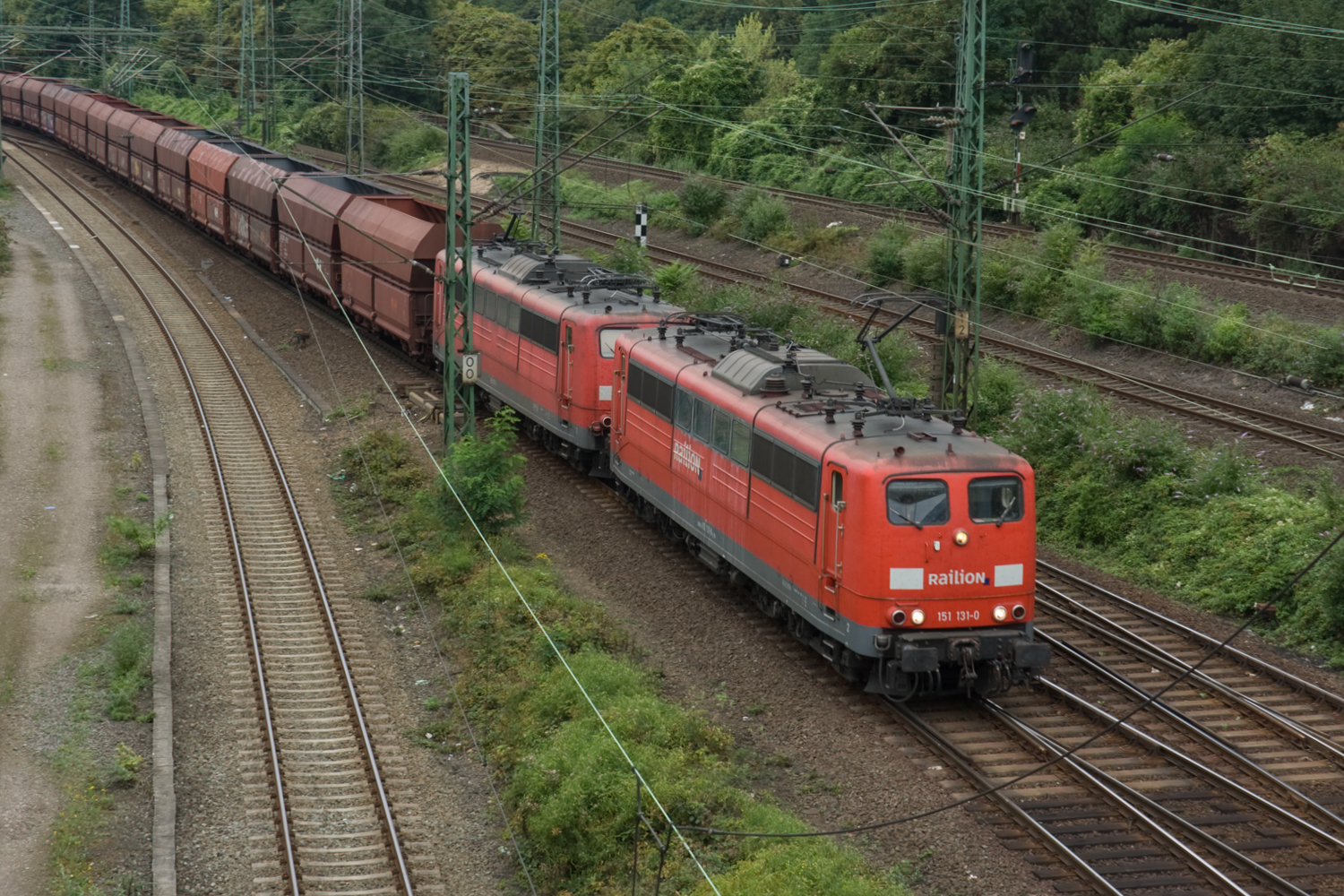 With the class 152 and the derived 189, DB Schenker certainly has more modern locomotives than the old 151, but on the really heavy trains, often as double-header, the 151 is still a mainstay of german railroading. This train, spotted in Cologne West, is empty, though. From the color of the insides of the cars, I’d guess they are used to haul coal, but DB has always used the same type of car for a lot of different loose freight (even if that’s a little inefficient), so it’s not absolutely certain.
